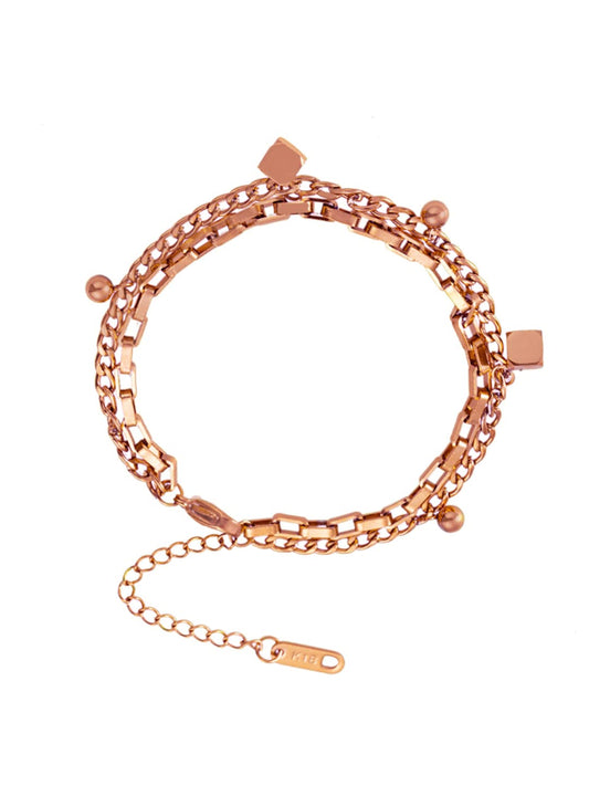 Chain Bracelet for Women Gold-Plated 2 Layered Stainless Steel Heart Charm Love Bracelet For Women and Girls