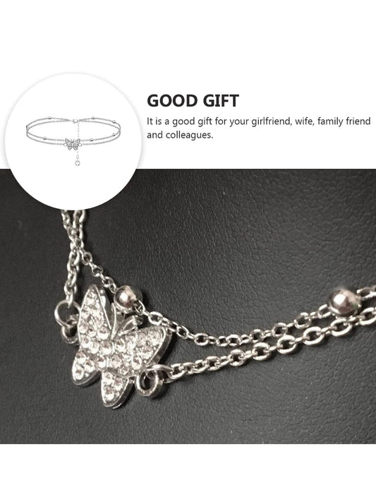Crystal Anklets with Toe Ring for Women Beach Anklet Chain with White Crystals Lady's Beach Wedding Foot Jewelry For Women and Girls