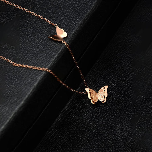 Pendant Set for Women Butterfly Surgical Steel 18K Real Rose Gold Plated Pendant Set for Girls and Women