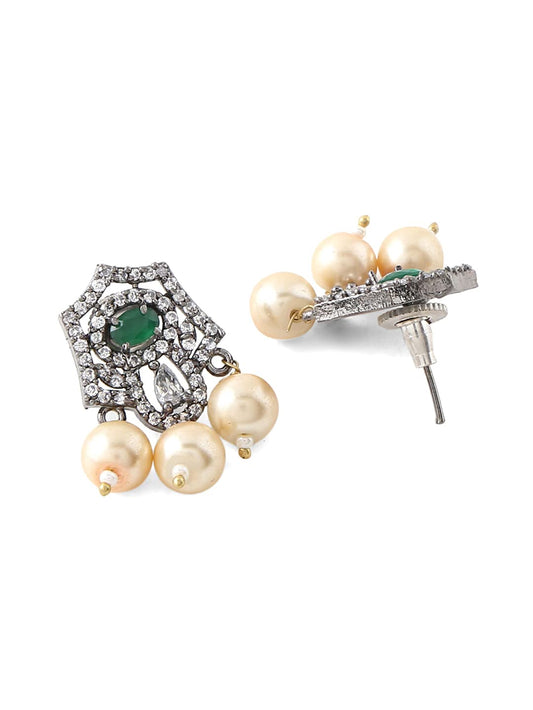 Ethnic Jewellary Set for Women Green and White Stone studded Chokker Necklace With Earings Jewellary Set for Women And Girls