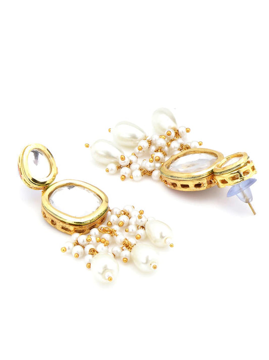 Kundan Jewellery Set for Women Gold Plated Traditional Necklace Set White Moti Beads Ethnic Choker Necklace Set for Women and Girls