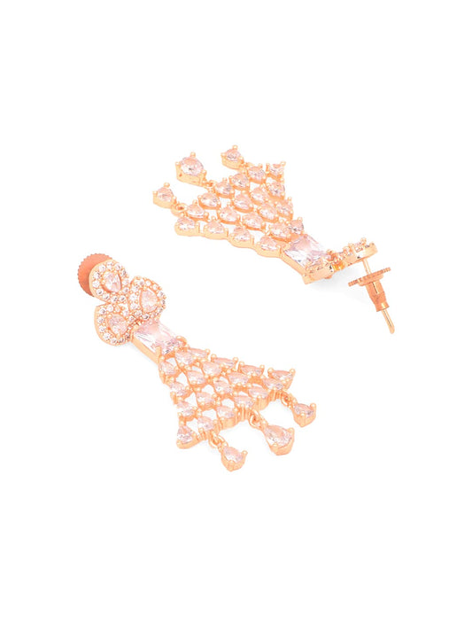 American Diamond Jewellery Set for Women Rosegold Plated Bridal Wedding White AD Jewellery Necklace Set for Women and Girls