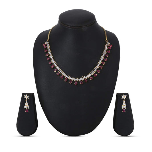 Jewellery Set for Women and Girls Traditional Pink American Diamond Jewellery Set | Gold Plated AD Necklace Set for Women | Birthday Gift for girls and women Anniversary Gift for Wife