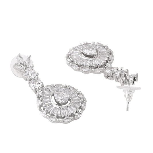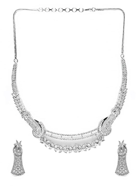 Jewellery Set for Women and Girls Traditional White American Diamond Jewellery Set | Rhodium Plated AD Necklace Set for Women | Birthday Gift for girls and women Anniversary Gift for Wife