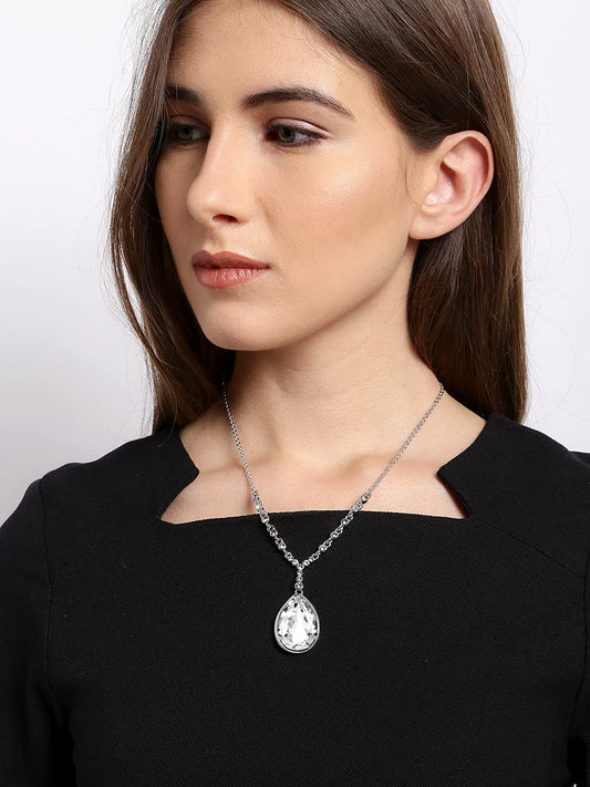 Jewellery Set For Women with Studded Classic Design Silver Plated White crystal Necklace Set (Design-10)