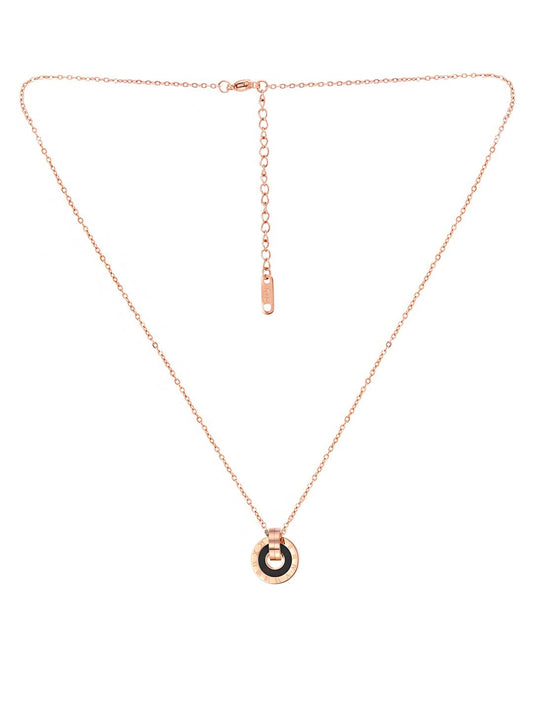 Latest Fashion Stainless Steel 18K Rose Gold Plated Roman numericals Engraved Statement Style Pendant Set with Earrings for Women and Girls
