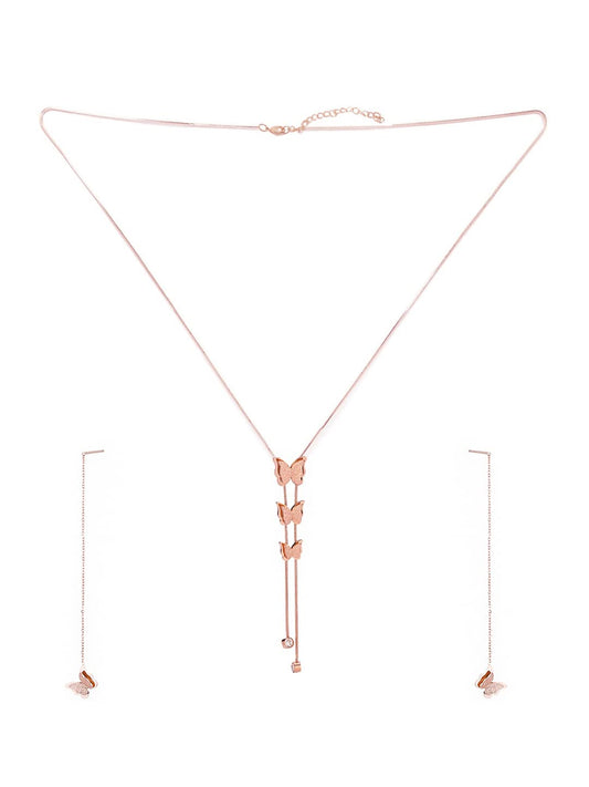 Pendant for Women and Girls Pendant Set for Girls |Gold Toned Butterfly Designed Pendant and Earrings Set for women | Birthday Gift for girls and women Anniversary Gift for Wife