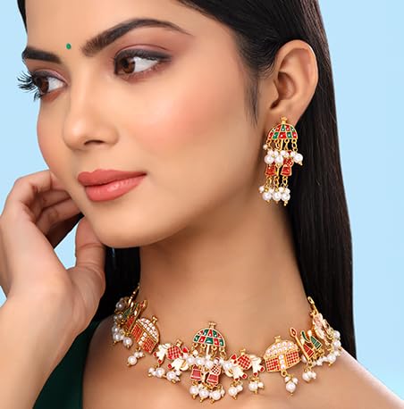 Jewellery Set for Women and Girls Traditional Red Beads Choker Set for Women | Gold Plated Choker Necklace Set | Birthday Gift for girls & women Anniversary Gift for Wife