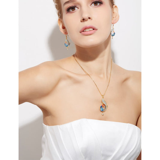 Pendant Set for Women and Girls Blue Crystals from Swarovski Pendant Set Silver Tone Floral Pendant With Earrings Set for Girls | Birthday Anniversary Gift for Wife Birthday Gift for girls and women