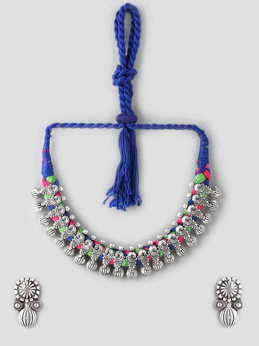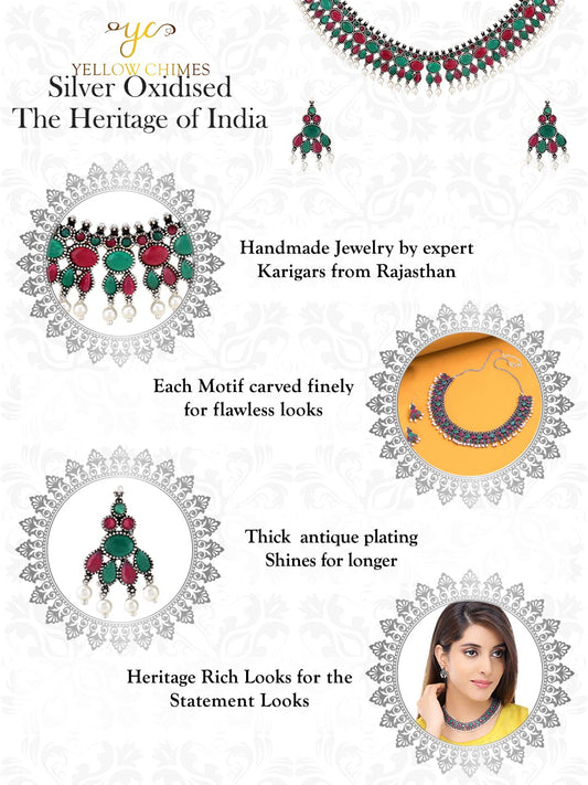 Jewellery Set for Women and Girls Traditional Silver Oxidised Jewellery Set Multicolor Choker Set | Studded Stone Choker Necklace Set for Women | Birthday Gift For Girls and Women Anniversary Gift for Wife
