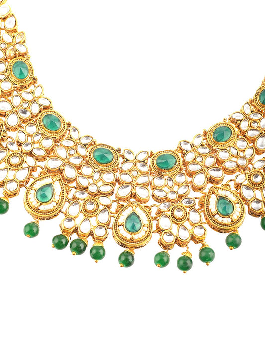Gold-Plated Necklace Set Kundan Studded Design Green Stone-Studded Necklace Set For Women & Girls