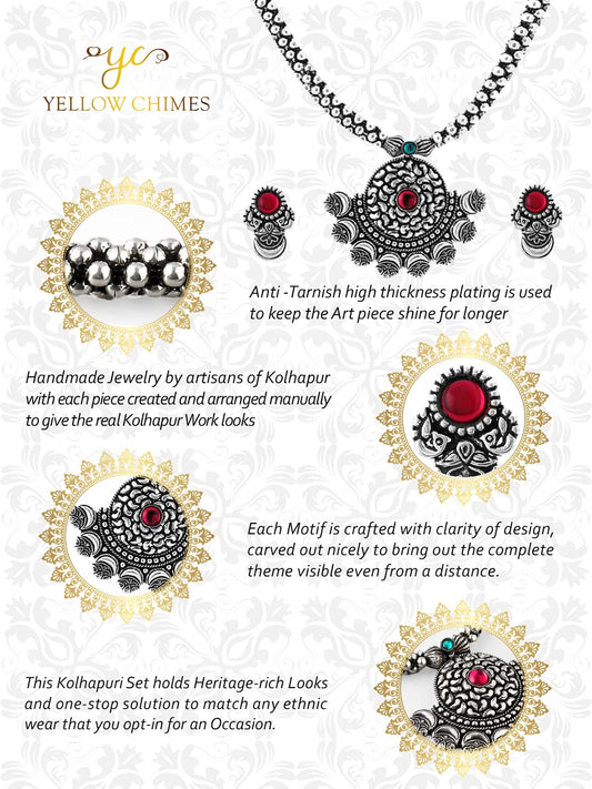 Oxidised Jewellery Set for Women Authentic Kolhapuri Work Handmade Silver Traditional Necklace Sets for Women and Girls.
