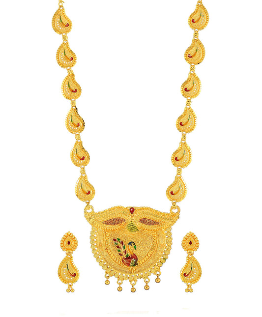 Jewellery Set for Women and Girls Traditional Golden Jewellery Set for women Gold Plated Necklace Set | One Gram Gold Long Haram Jewellery Set | Birthday Gift for girls and women Anniversary Gift for Wife