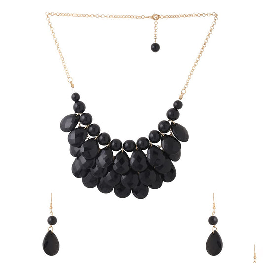 Jewellery Set For Women Black Stone Tear Drop Designed Gold Toned Necklace Set For Women and Girls