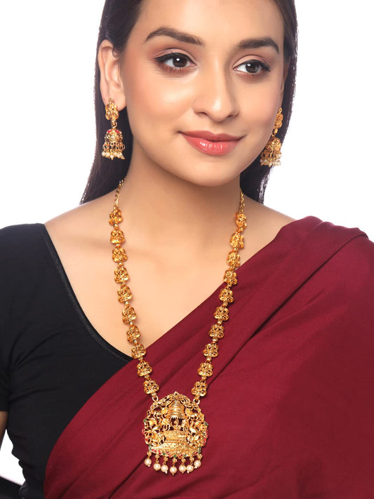 Necklace Set For Women And Girls Traditional Jewellery set for women Gold-Plated Temple Necklace Set Stone-Studded Necklace Set For Women & Girls