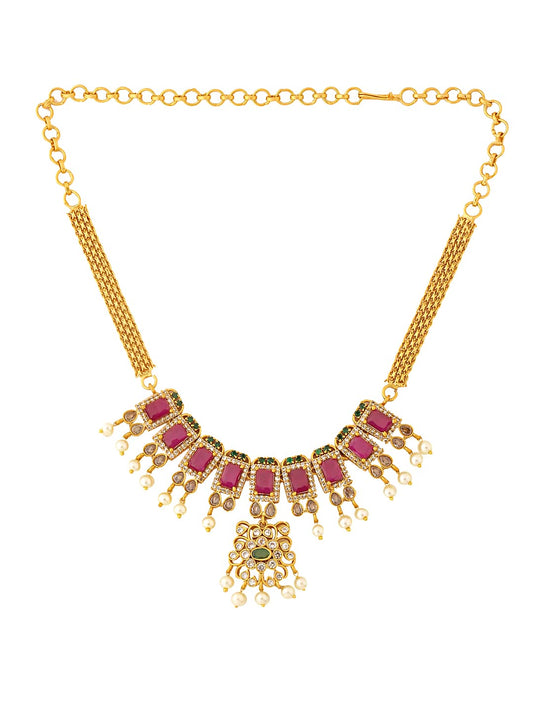 Jewellery Set for Women and Girls Traditional Jewellery Set Gold Plated Necklace Set Stone Studded Antique Jewellery Birthday Gift for Girls and Women Anniversary Gift for Wife