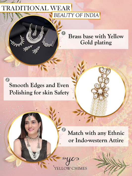 Jewellery Set for Women and Girls Traditional White Kundans Necklaces Set Gold Plated Kundan Necklace Set | Multilayer Dulhan Bridal Jewellery Set | Birthday Gift for girls and women Anniversary Gift for Wife