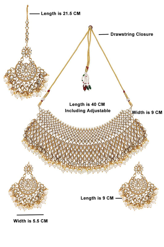 Kundan Bridal Jewellery Set Gold Plated Traditional White Choker Necklace Set for Women & Girls