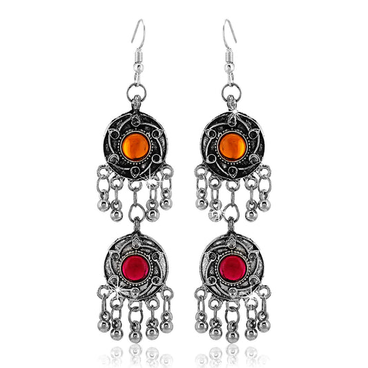 Jewellery Set for Women and Girls Traditional Silver Oxidised Jewellery Set Multicolor Necklace Set for Women | Statement Style Afghani Multilayer Oxidized Necklace Set | Birthday Gift For Girls and Women Anniversary Gift for Wife