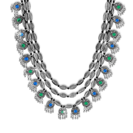 Jewellery Set for Women and Girls Traditional Silver Oxidised Jewellery Set Green Blue Necklace Set for Women | Statement Style Afghani Multilayer Oxidized Necklace Set | Birthday Gift For Girls and Women Anniversary Gift for Wife