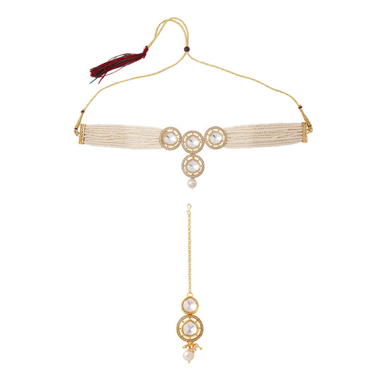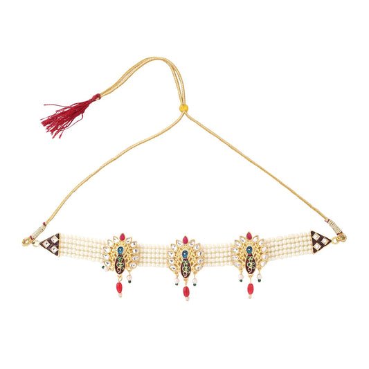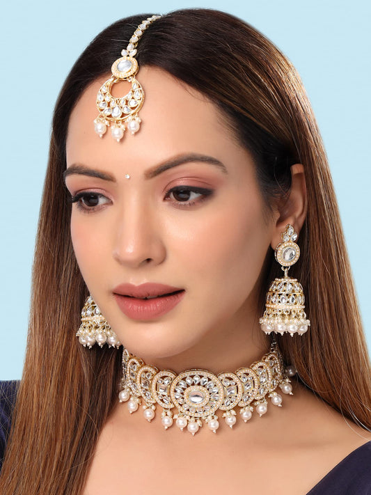 Jewellery Set for Women and Girls Kundan Necklace Set Gold Plated Kundan Studded White Pearl Drop Choker Necklace Set | Birthday Gift for girls and women Anniversary Gift for Wife