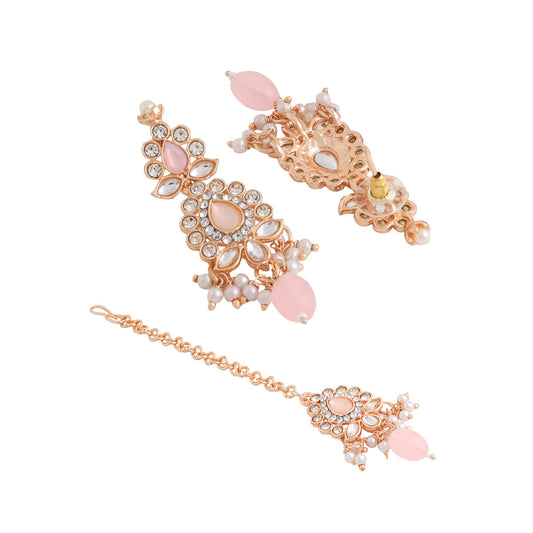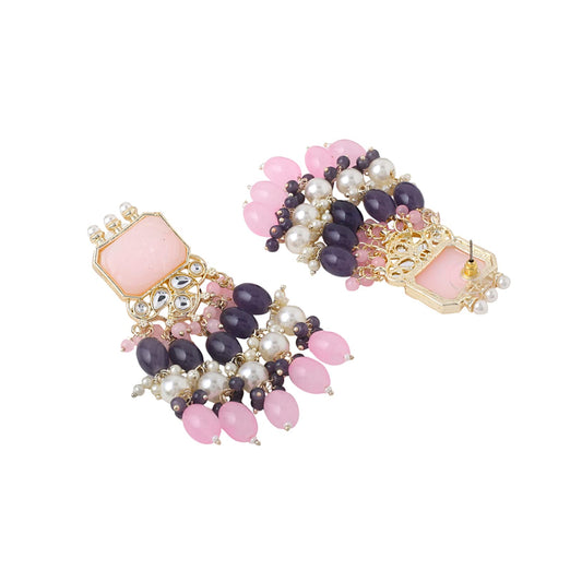 Jewellery Set for Women and Girls Kundan Necklace Set Gold Plated Kundan Studded Pink Beads Drop Choker Necklace Set | Birthday Gift for girls and women Anniversary Gift for Wife