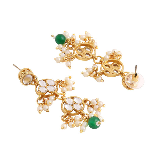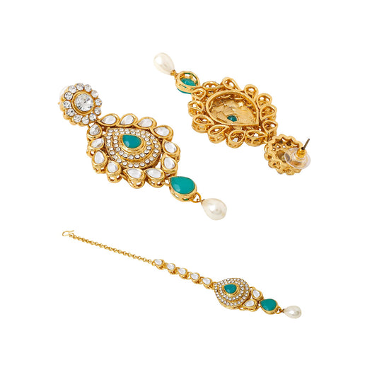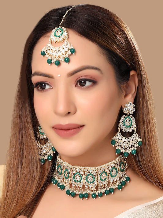 Jewellery Set for Women Gold Toned Kundan Studded Pearl Drop with Beads Green Meeanakari Touch Choker Necklace Set with Earrings for Women and Girls
