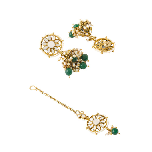 Jewellery Set for Women and Girls Kundan Necklace Set Gold Plated Kundan Studded Green Beads Drop Choker Necklace Set | Birthday Gift for girls and women Anniversary Gift for Wife