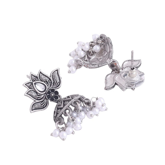 Jewellery Set for Women and Girls Traditional Silver Oxidised Jewellery Set | Lotus Designed Oxidized Necklace Set | Birthday Gift For Girls and Women Anniversary Gift for Wife