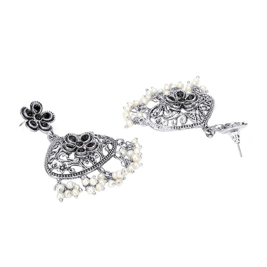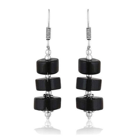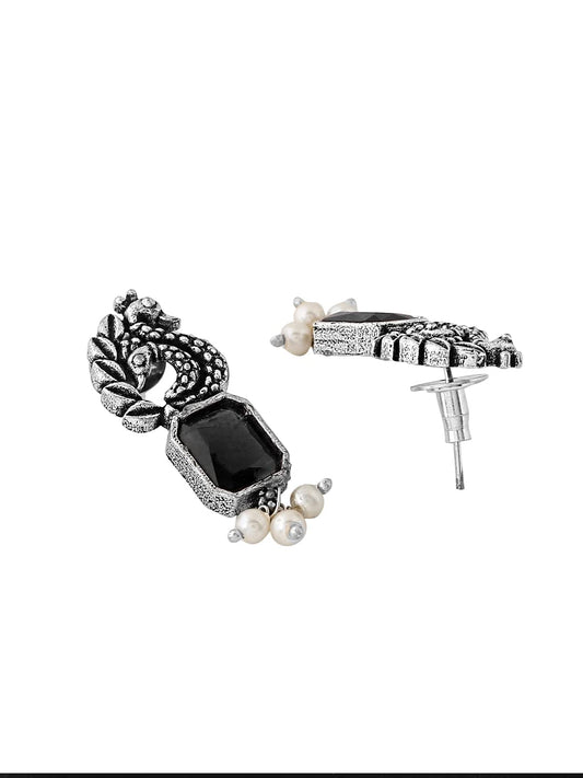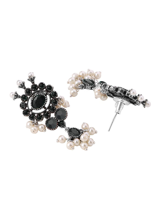 German Oxidized Silver Ethnic Black Quartz Beads Beautiful Handmade Designer Necklace Set with Earrings Jewellery Set for Women and Girls (Black)