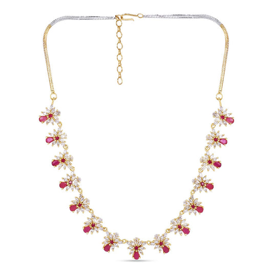 Classic White & Pink AD/American Diamond Studded 18K Gold Plated Floral Designer Necklace Set Jewellery Set for Women & Girls