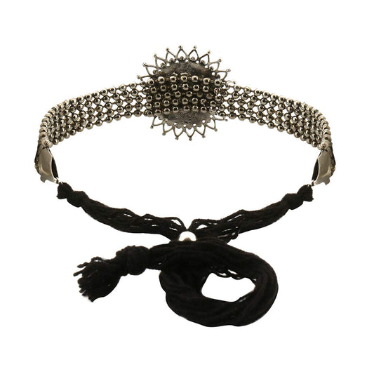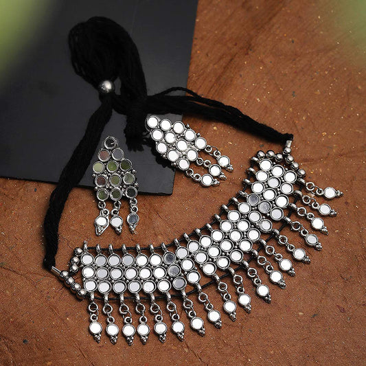 Oxidised Jewellery Set for Women Silver Oxidised Black Studded Stones Choker Necklace Set for Women and Girls.