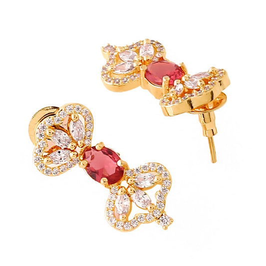 Jewellery Set for Womens Gold Plated AD/American Diamond Studded Red Crystal Necklace Set with Earrings for Women and Girls