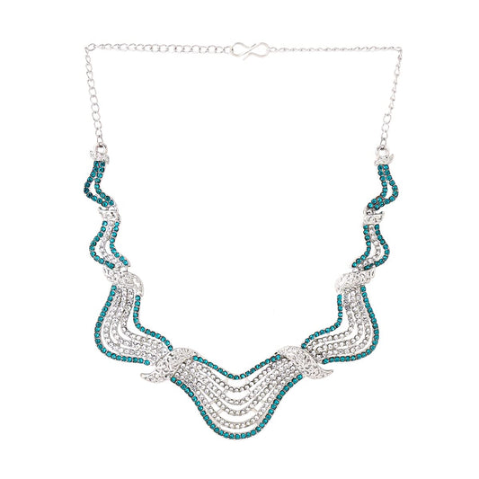 Jewellery Set fort Women with Multicolor Crystal Studded Classic Design Silver Plated Necklace Set for Women and Girls