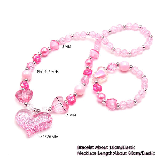 Melbees by Jewellery Set for Kids Girls Kids Jewellery Heart Pink Beads Necklace & Bracelet Set for Girls Kids Accessories Set for Kids