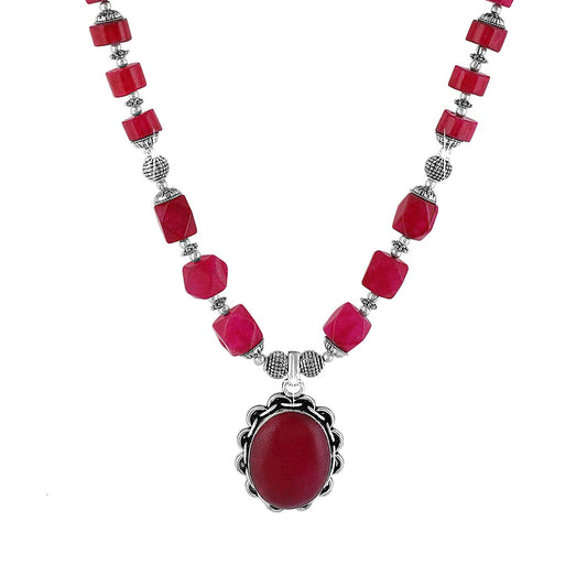 German Oxidized Silver Ethnic Pink Quartz Beads Beautiful Handmade Designer Necklace Set with Earrings Jewellery Set for Women and Girls (Pink)