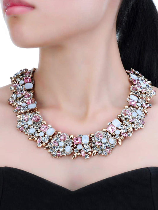 Exclusive Sparkling Pink Crystals Studded Designer Choker Necklace set with Earrings for Women and Girls (Pink)