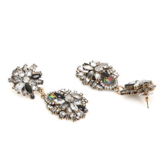 Exclusive Sparkling Black Crystals Studded Designer Choker Necklace set with Earrings for Women and Girls (Black)
