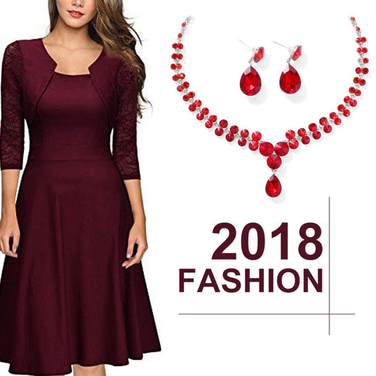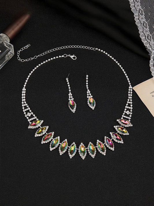 AD Crystal Elements Delicate Drop Design Sparkling Colors Fascinating Necklace Set with Earrings for Women