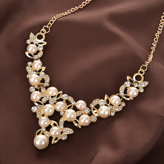 Necklace with Earrings Collection Gold Plated and Pearl Jewellery Set for Women (White;Golden)