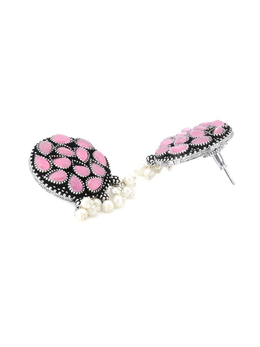 Jewellery Set for Women and Girls Traditional Silver Oxidised Jewellery Set Pink Choker Set | Threaded Peacock Shaped Stone Choker Necklace Set for Women | Birthday Gift For Girls and Women Anniversary Gift for Wife