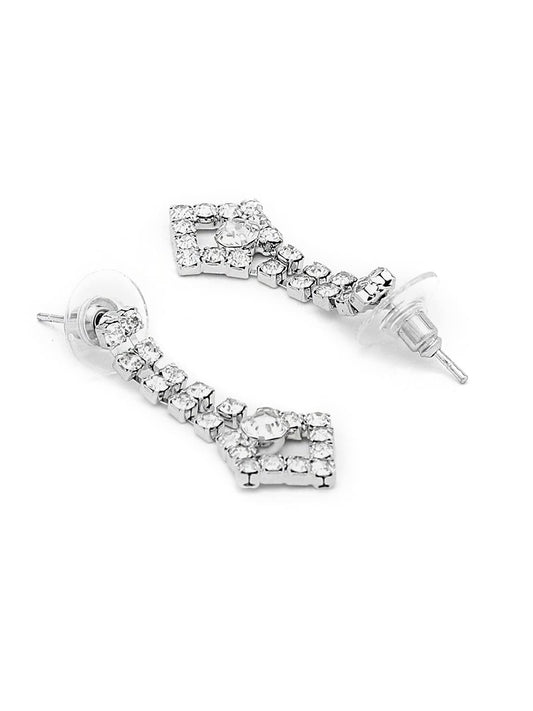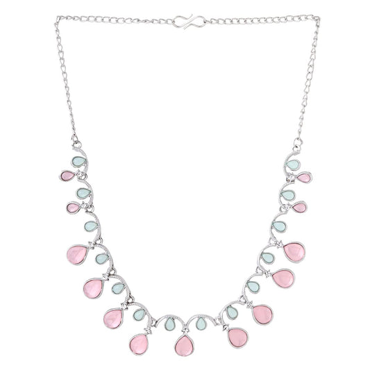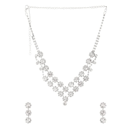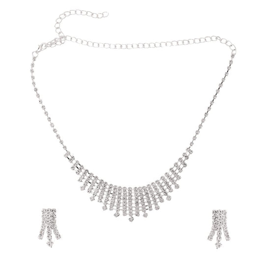 Jewellery Set with White Crystal Studded Classic Design Silver Plated Necklace Set for Women and Girls