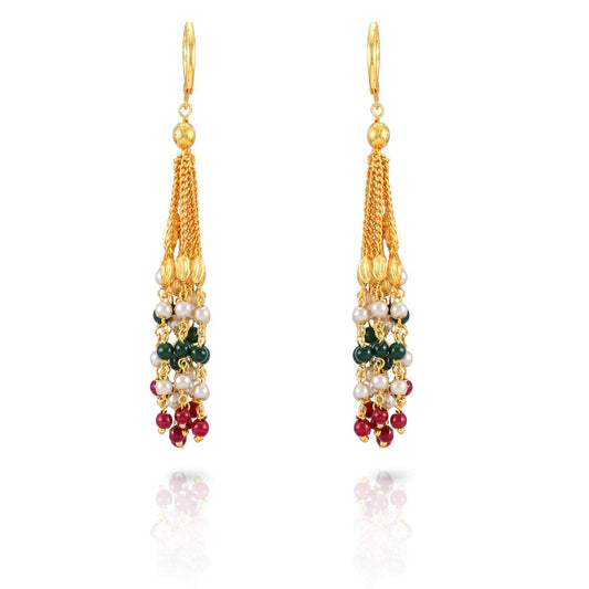 Ganthan Moti Handmade Pearl Multilayer Beads Gold Plated Traditional Long Chain Necklace Set with Earrings Jewellery Set for Women and Girls