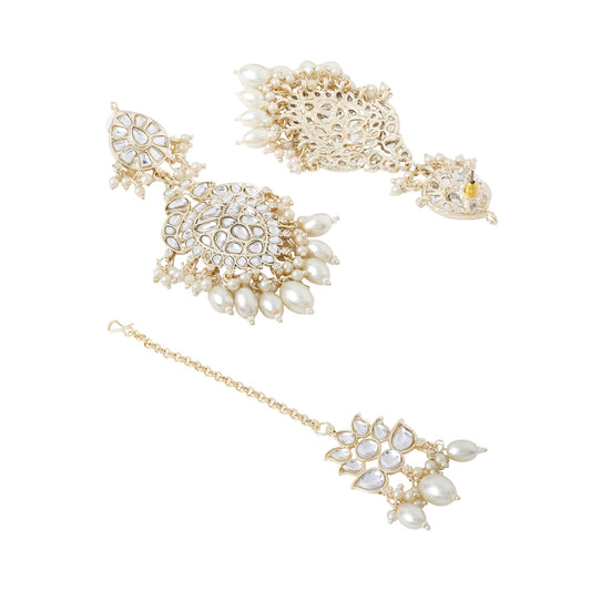 Jewellery Set for Women and Girls Kundan Jewellery Set for Women| Gold Tone Moti Beads Kundan Necklace Set | Birthday Gift for girls and women Anniversary Gift for Wife