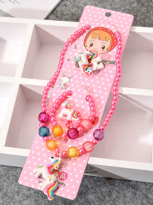 Melbees by Unicorn Jewellery Set for Kids Girls Kids Jewellery Pink Beads Necklace Set Bracelet Ring Accessories Set for Kids
