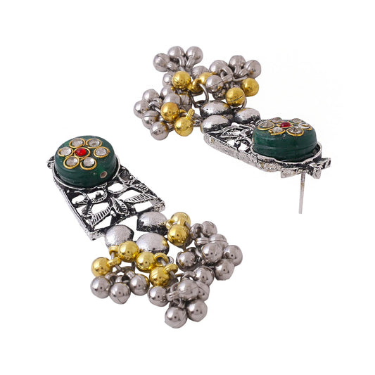 Oxidised Jewellery Set for Women Silver Oxidised Multicolor Studded Stones Choker Necklace Set for Women and Girls.
