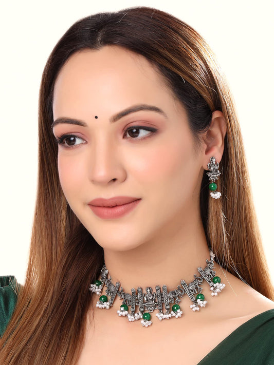 Jewellery Set for Women and Girls Silver Oxidised Jewellery Set | Temple DEsigned Oxidized Necklace Set | Birthday Gift For Girls and Women Anniversary Gift for Wife
