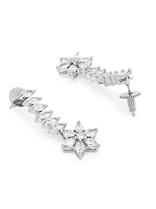 Jewellery Set for Women Silver Toned American Diamond/AD Studded Floral Charm Design Choker Necklace Set with Earrings for Women and Girls