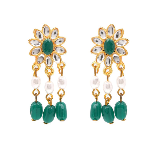 Jewellery Set for Women and Girls Kundan Necklace Set | Gold Plated Green Pink Beads Drop Kundan Necklace Set | Birthday Gift for girls and women Anniversary Gift for Wife