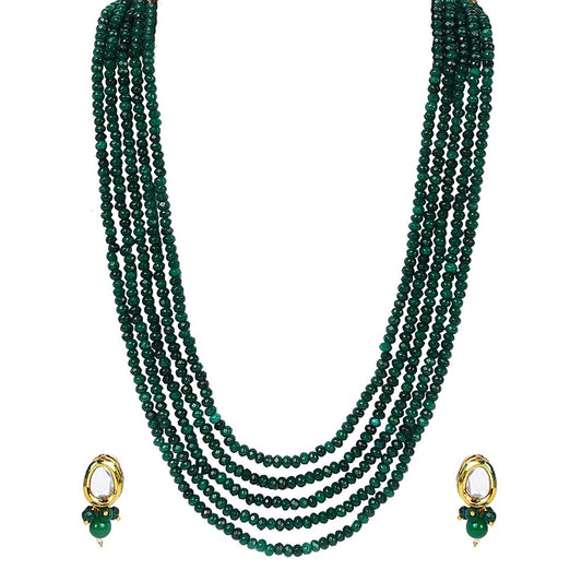 Classic Design Five Layers Emerald Green Onyx Stone Beads Semi Precious Gemstone Necklace set With Earrings For Women & Girls